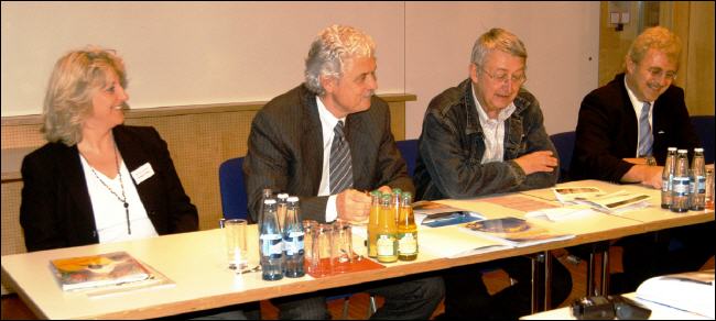... mit den Teilnehmern Susanne Schlung, Produktmanagerin für „Neckermann-Care“ – „Neckermann Deutschland“; Wolfgang Eckhardt, erster Bürgermeister von Bad Windsheim (1. v. r.) ; Bernd Opolka (2. v. l.) vom ARCD (Autoreiseclub Deutschland); Moderation: Ronald Keusch (siehe Presse Mittelfranken)